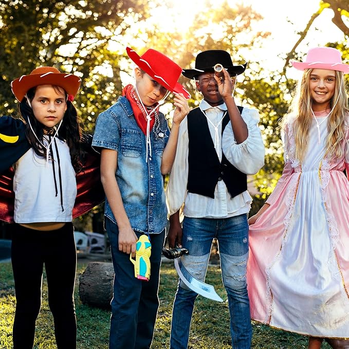 - Quality Materials: these kids party cowgirl hats are made of felt, a material that is soft and skin-friendly, you will not be sting when worn them; The fine stitching allows kids party cowboy costume hats to maintain a good shape, will not collapse easily, and is very convenient to store