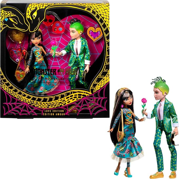 Monster High Howliday Love Edition Dolls, Cleo De Nile & Deuce Gorgon Collector 2-Pack with Valentine's Accessories & Displayable Packaging