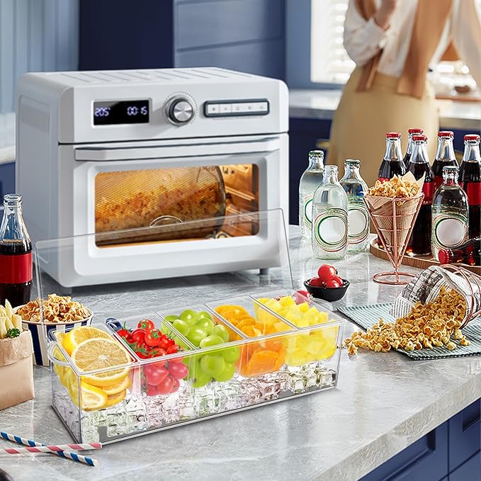 - Keep Food Fresh: Put an appropriate amount of crushed ice under the trays to keep your food cool and crisp and can maintain the freshness and juiciness of food for a longer time, suitable for fruit, salads, dressings, veggies, sauces etc