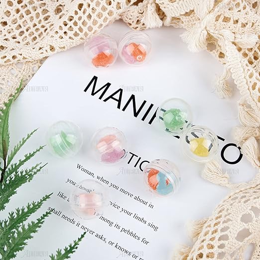 AUEAR, 100 Pack Translucent Small Round Capsules 1.1 Inch Vending Machine Empty Plastic Gumball Containers for Party Favor Prize