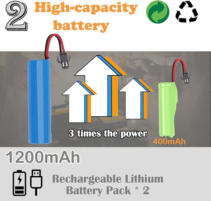 - 【2 High-capacity Batteries】1200 mAh rechargeable batteries make excavator and kids more energetic! It offers nonstop construction fun.