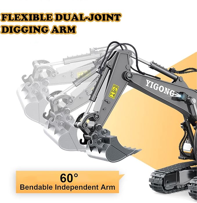 - 【Indoor & Outdoor Trick Performance】Digging and Construction: Kids can use the remote control excavator to dig and move objects like sand, dirt, or small rocks. They can create their own construction sites or pretend to be builders constructing roads, buildings, or even mini landscapes.