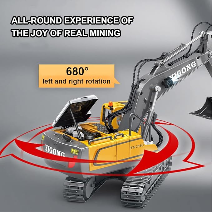 - 【Powerful Alloy Bucket】Performs well on real dig and lifting a shovel full. Can coordinate with the cab swiveling within 680 degrees and the excavator moving forward/back.Take the remote control excavator to an outdoor space like a sandbox, beach, or park. Kids can use it to dig and explore different terrains, fostering their curiosity about the natural world.