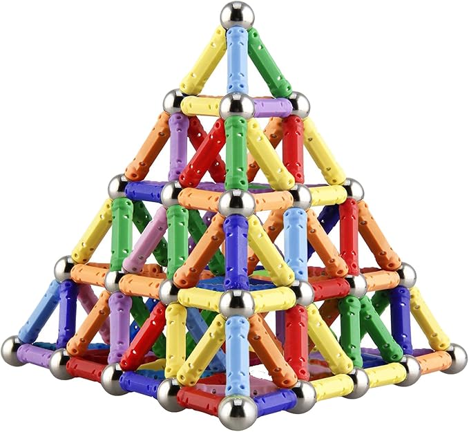 - ⛳BUILDING WHAT YOU IMAGINE - This Magnetic building set include 110pcs magnetic plastic bars and 40pcsnon-magnetic steel balls, So many sticks and balls allow your kids to create more geometrical shapes including 3D forms numbers counts, magnetic polarities & architectural design.