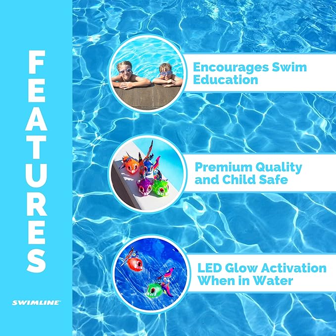 - {NEW LED FEATURE} These toys bring underwater light-up capabilities via innovative built-in LED smart lights that automatically turn on when underwater. This ultimately makes your swimming and dive retrieval games more fun, interesting, and easier.