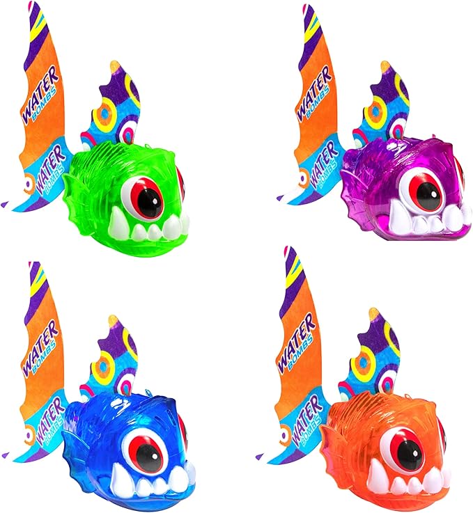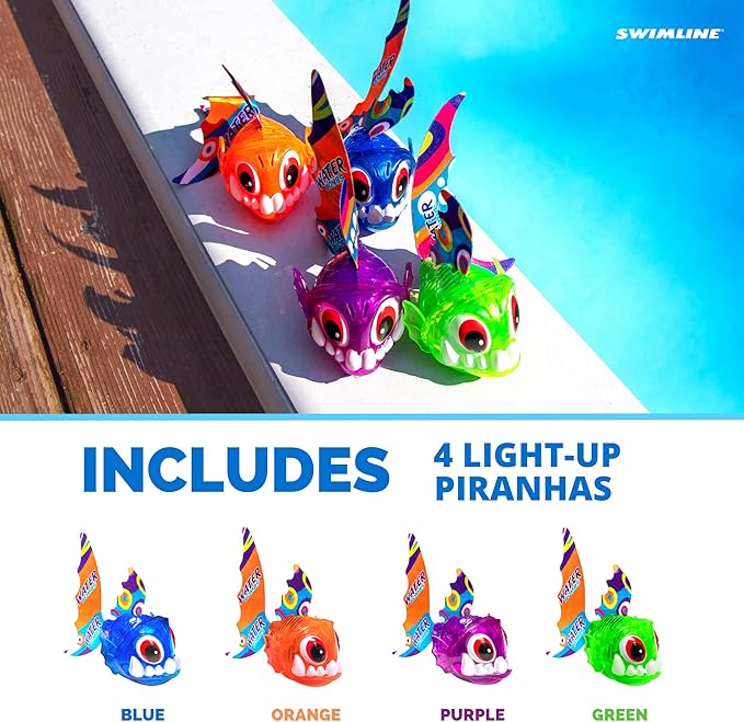 Swimline Original 4-Pack Diving Toys LED Light-Up Glowing Sea Animal Piranha Catch The Fish Retrieval Game for Swimming Pool & Bath Tub for Kids Multi Color Flashing Underwater Dive Practice Learn