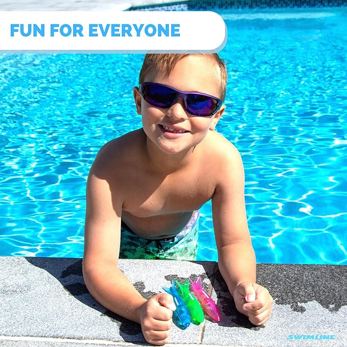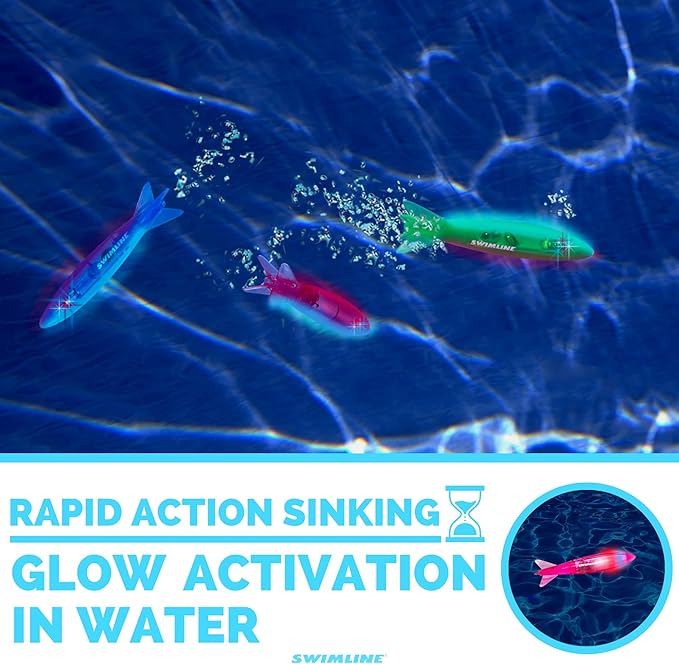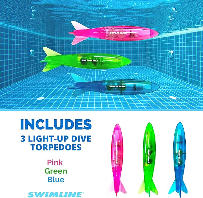 - {ULTIMATE DIVE TOY} Swimline LED Glow-Up Dive Toys bring a new and innovative feel to underwater toys. Features a torpedo design that SOARS through the water when thrown. The toys sink to the bottom of your pool for fun swimming and diving practice.