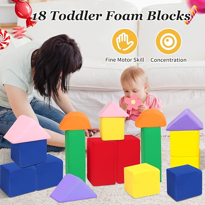 Foam Blocks for Toddlers, Soft Building Blocks for Toddlers Colorful Stacking Blocks for Kids - 18 Pieces