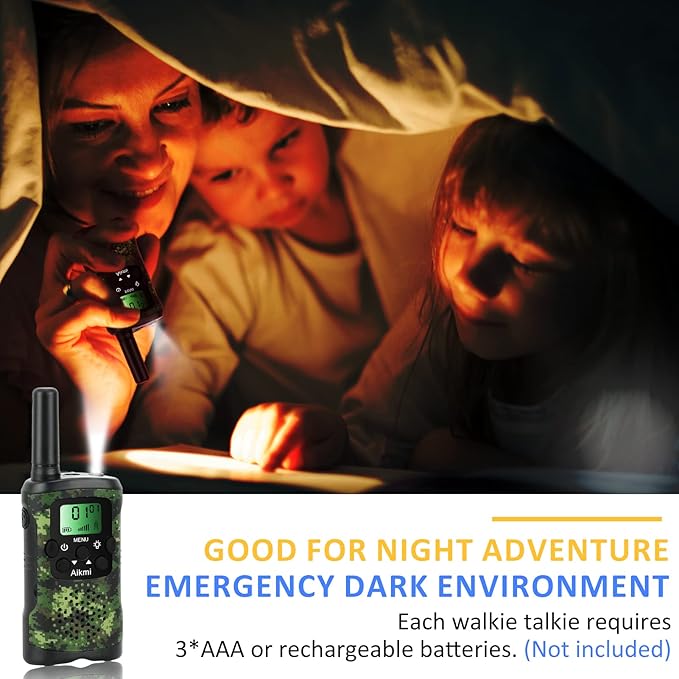 - EXPLORE THE OUTDOORS: Aikmi walkie talkies for kids features 22 channels, 3-mile range, flashlight, VOX hands-free and private channel option. These army toys walkie talkies are easy to use with fit size, good volume, long distance and great battery life. Plus, they come with a tactical pouch and kids binocular for even more outdoor fun