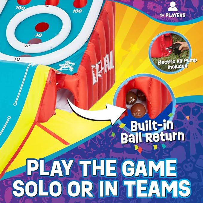 - GIANT: Get ready for some big fun with this inflatable Skee-Ball Game. This outdoor game is perfect for the whole family and includes 4 rubber balls and an electric air pump for easy setup