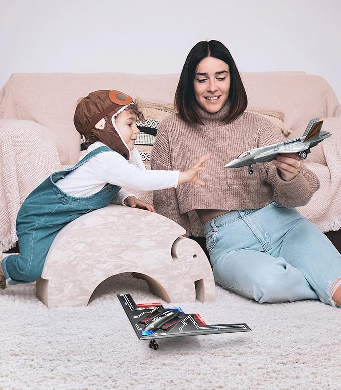 - 【Larger size】Airplane size: 8.66*2.75* 6.1 In. Stealth Bomber size: 10.6*3.94 In. No batteries needed to fuel the fun. Just pull back the fighter toys and watch it race across the floor. The pull back toys is always ready to fly!
