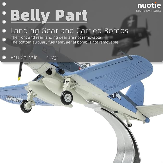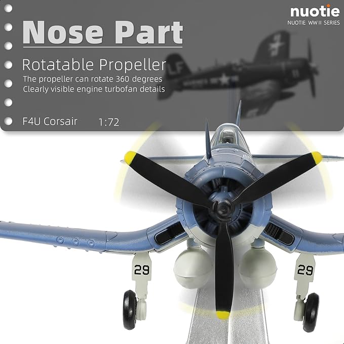 - 【Material Craft】-NUOTIE f4u corsair model kit is a metal die-cast airplane model kit, 90% made of high quality metal, the model is sturdy and durable. The surface is painted with baked enamel, clear painting and marking, smooth surface, bright colors, and won't crack or fade with long-term use. Sturdy model with non-fading paint makes this WWⅡ model planes kits perfect for collecting on a desk, office table or display shelf.