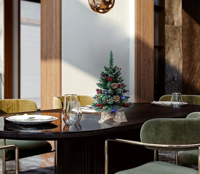 Little Christmas Tree Prelit 24 Inch Mini Christmas Tree for Desktop Decorating - Luxury Christmas Tree with Light| 4 Colors and 8 Modes String Light| Wooden Base and Picture Cloth Bag Wrapped Up