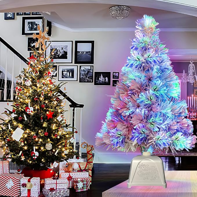 - 【tabletop christmas tree with lights】: Green tree circulated by multi-color fiber optic lights presents holiday atmosphere Color changes,Adjustable branches allow you to shape the tree