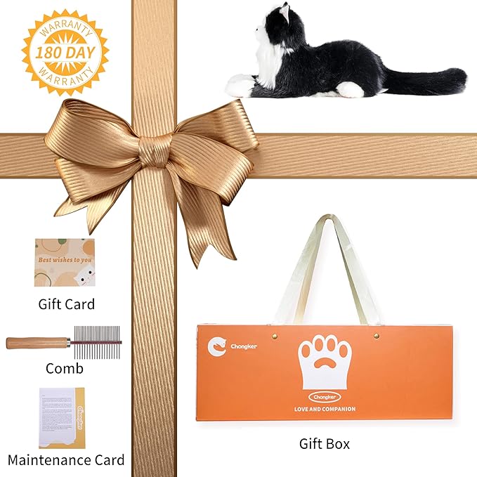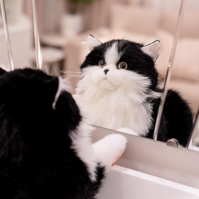 - Realistic Lifelike Cat Stuffed Animals: Designed for weighted simulation, this plush accurately reflects the posture and size of a real cat. It features dynamic expressions, soft silicone paw pads, mysterious eyes, and adorable ears. Made with synthetic, soft, and combable fur, it offers a true sense of companionship.
