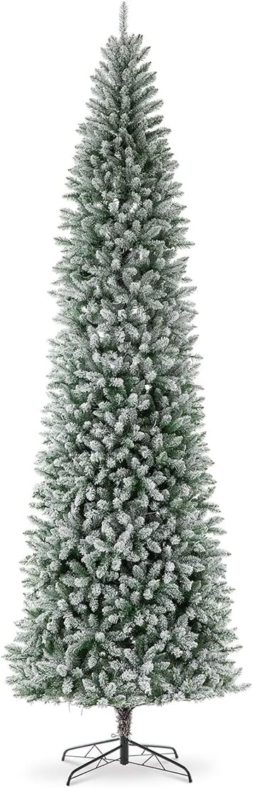- 🎄NATURAL LIFELIKE APPEAL: Our pencil Christmas tree features Feel Real branch tip technology, creating a tree with remarkable realism. These crush-resistant branch tips are molded from real tree branches for an authentic living tree appearance. This tree with its snow-dusted branches is pre-strung with 950 clear lights that remain lit even if a bulb burns out,It creates fragrant Christmas atmosphere.
