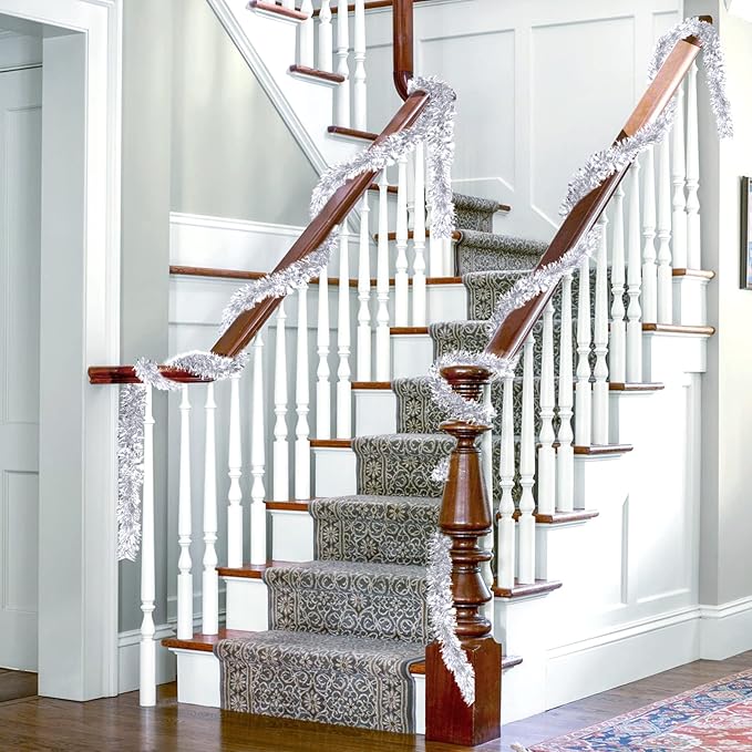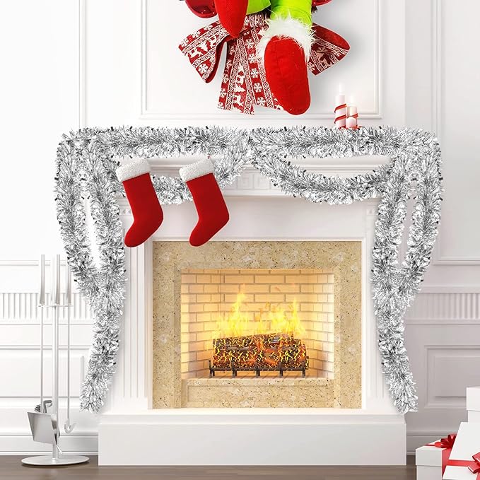 - [Christmas Tinsel Garland Decoration] Total 50FT, silver Christmas tinsel garlands, soft fashionable tinsel garlands, reflecting the sparkle to add to the festive atmosphere.