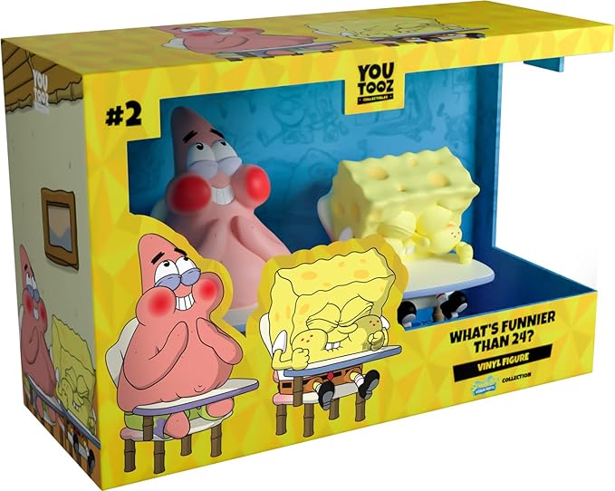 - YOUTOOZ SPONGEBOB COLLECTION: The funniest thing in the world, second only to 25. What’s Funnier Than 24 has been sculpted at 4 inches tall. It features two figures, SpongeBob and Patrick. SpongeBob sits, eyes squeezed closed, both fists on the table in front of him. He’s sculpted mid-laugh, cheeks puffed out with their. Patrick appears grinning, showing teeth, his cheeks red and puffed up with air.