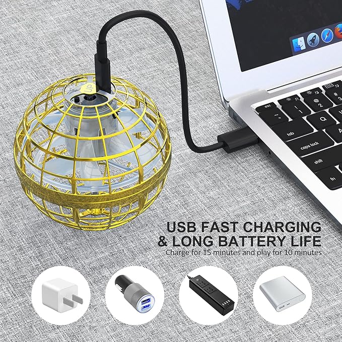 - Endless Fun with Hover Ball:Experience uninterrupted fun with USB Charging feature of this flying orb ball.Achieve a full charge in just 20 minutes and enjoy 8-10 minutes of continuous flightIt supports versatile charging options,including computers,power adapters, mobile phones,and portable chargers.The indicator light provides real-time charging status updates, ensuring you're always ready for the next adventure