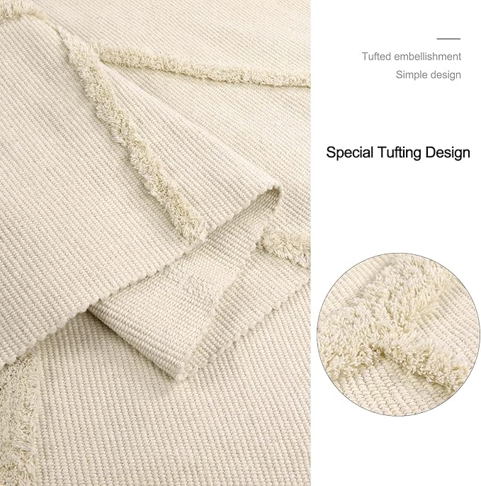 - 【Hand Woven Cotton Rug】: Handmade from cotton blend fabric, OJIA tufted area rug exudes high durability, resilience, comfort, and easy maintenance. Natural and skin-friendly, with no printing and dyeing, non-shedding, and safe for the human body and pets.