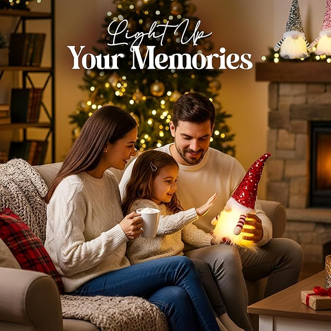 • 3 Pack of 12" Christmas Lighted Gnomes: These light up gnomes plush glow warmly as christmas lighted gnome decorations. Perfect cute christmas decor, christmas desk decor, christmas house decor, or christmas decorations indoor home decor.