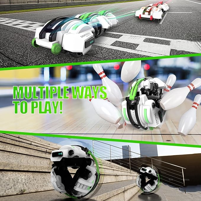 - 🚗【Unique Snakes Remote Control Car】This rc stunt car can Twirl and rotate 360 degrees very quickly, fliply, and roll forward. ou can easily switchs from car to ball or from ball to car mode with 1 button on the remote control, and this rc car is good at flipping and spinning. RC car flipped over? No problem! You can restore it to its original state with 1 key! ‼ Note: Only drive on smooth ground, Not on carpet/mud/grass/sand