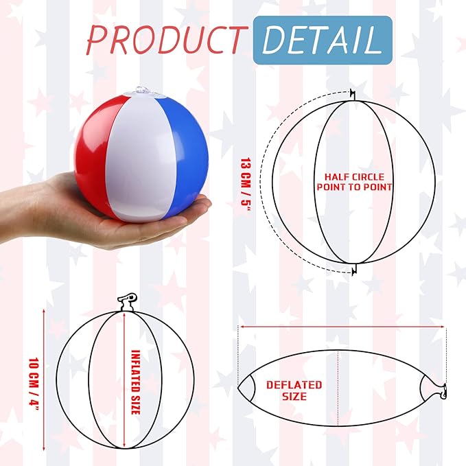 - Safe Material: 4th of July beach ball is made of PVC material, non toxic and odorless; It is well sewn, easy to inflate and hard to break for long term use