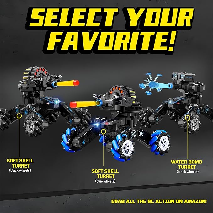 - 😎Crazy stunts and cool features: The stunt car have automatic demo function to show you more driving skills. RC tank that shoots car is very easy to assemble and disassemble,increase playability and Kid's DIY ability. With rich playbable functions- forward, backward, left and right with 360 rotation, lateral drifting, launching soft bullets, competitive mode, music led lights and lifting fort.It comes with a super cool LED light,music and a sprayer, bringing you a great visual experience.