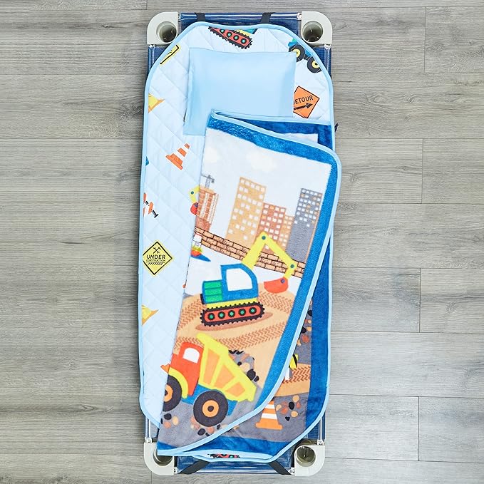- PLUSH COT NAP MAT WITH PILLOW AND BLANKET: The super soft quilted bottom and 100% brushed microfiber polyester create softness that’s irresistible for kids! Naptime is a breeze with our adorable and oh-so-comfy kids cot naptime mat with pillow!