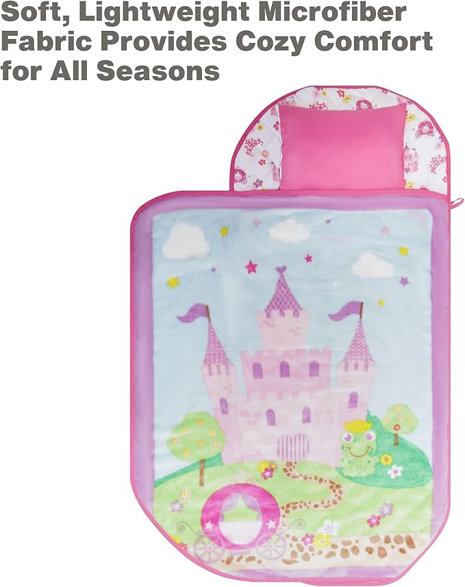 - SIZED FOR KIDS AGES 2 - 6: Sleeping Mat measures 20” in width by 50” in length with the attached blanket measuring 31” in width by 40” length. The pillow is removable. And, we’ve included a handy window for a name label!
