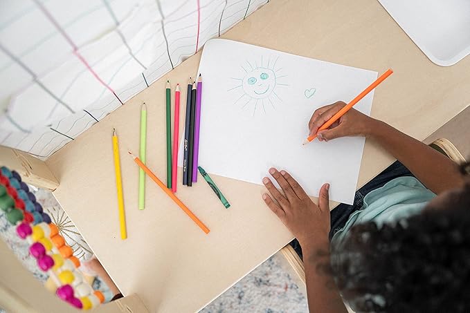 - Adjustable Height Desk & Chair: This indoor playhouse for kids features a Montessori desk and chair adjustable to two different levels, allowing this big playhouse to accommodate the varying needs and growth of children.