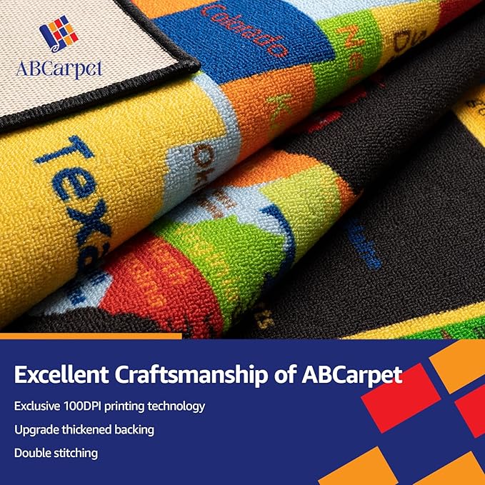 - Safety First --- ABCarpet classroom rug meet Class One Fire rating, and have passed the 16CFR1630 FF 1-70 flame resistance test and OEKO-TEX STANDARD 100, meet stringent safety standards for educational settings. For your safe use, each kids playmat undergoes rigorous inspection with a needle detection machine to ensure there are no broken needles or debris