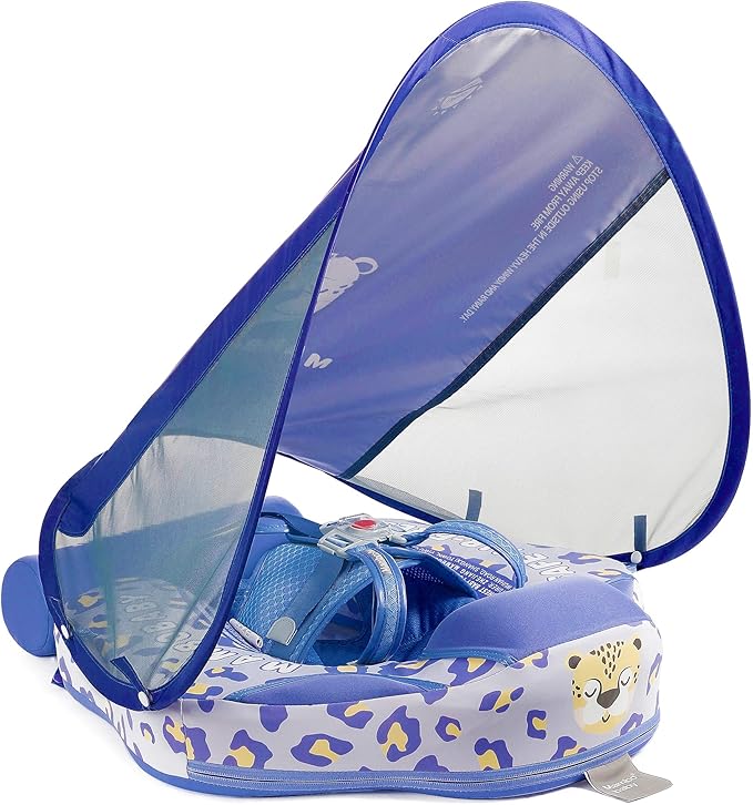 Mambobaby Float Add Tail Baby Swim Float with Canopy Solid Pool Infant Swim Trainer Swimming Training Lying Air Free Water Floats Non-Inflatable Waist Swim Ring for Toddlers (Leopard)