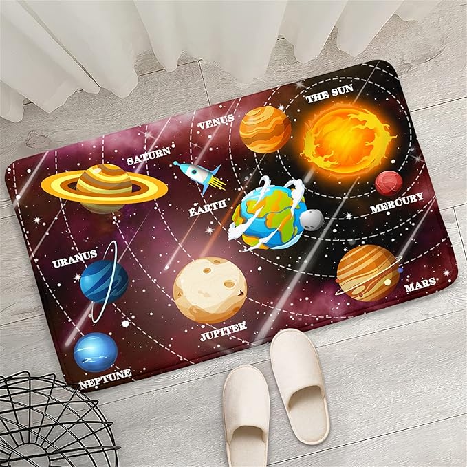 - 【Material】High quality material printed in full color, washable without color fading problems. Made of high-quality polyester, soft to the touch, and hard-wearing. Our space rugs have a high-quality rubber backing for superior safety grip.