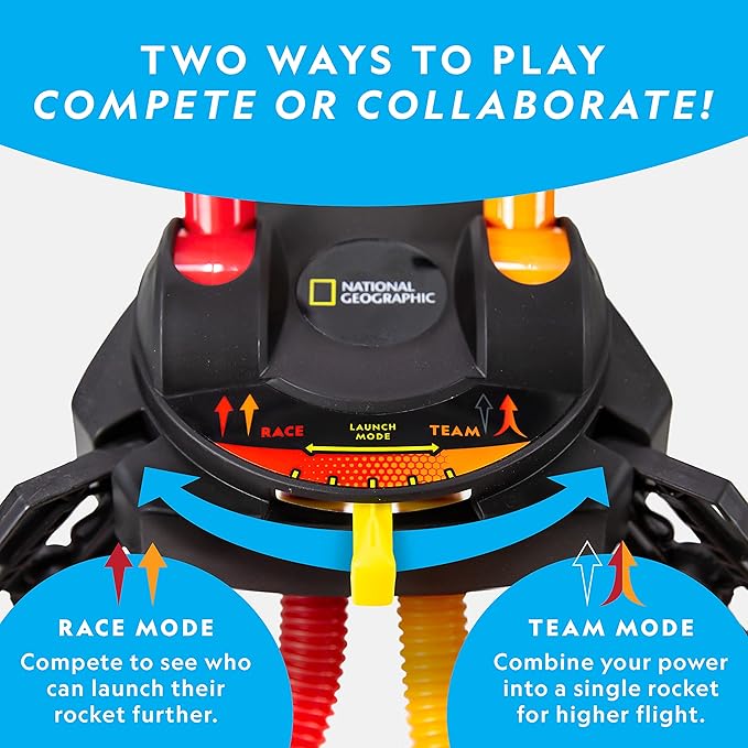 NATIONAL GEOGRAPHIC Air Rocket Toy – Jump & Launch Dueling Air Rockets up to 100Ft., Includes Launcher, 4 Foam-Tipped Rockets, Outdoors kids Toys, Kids Science Kit, Rocket Launcher (Amazon Exclusive)