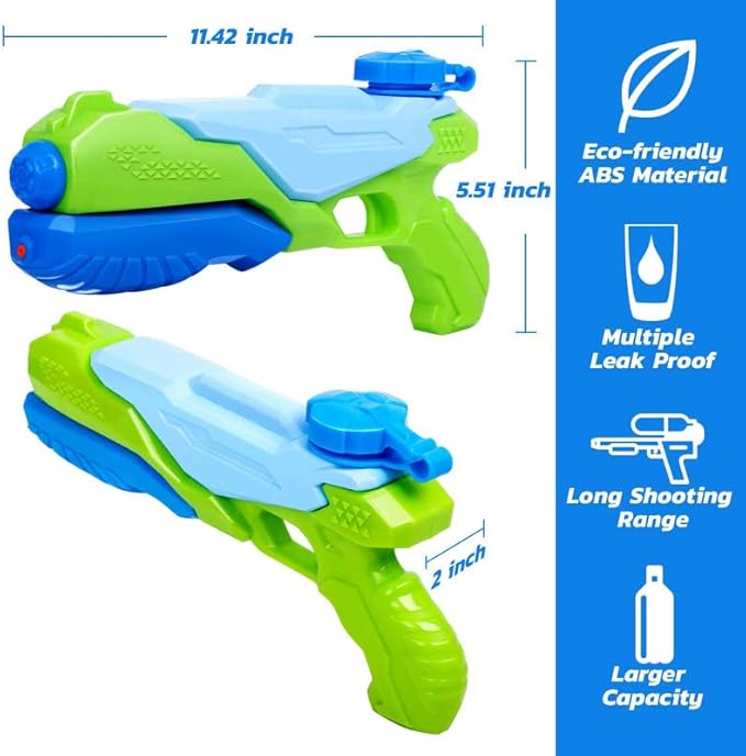 - 【High-Quality】Made with durable high-quality ABS materials. Tested for safety and durability. Resistance to falling. CPC certified. Environmental protection performance is good. Round edge design protects your kid's hands. The cool look and bright color water guns for kids will bring endless fun for children at any children’s pool party or outdoor summer festivity.