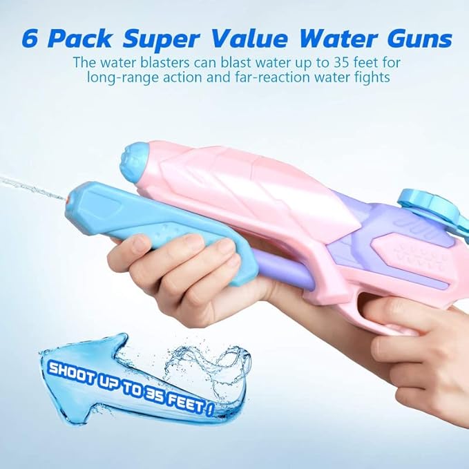 Water Guns for Kids 6 Pack Ages 4-8-12 Squirt Guns Water Pistol Super Soaker Blaster Bulk Long Range Water Fighting Toys Best Gifts for Boys Girls Adults Summer Swimming Pool Outdoor