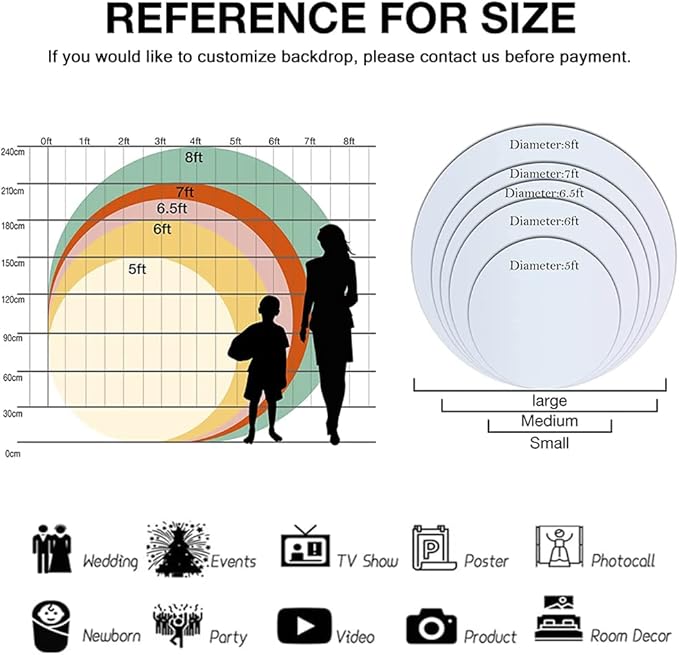 - Versatility: Polyester fabric round background fits for baby shower, birthday, wedding, bridal shower, graduation, festival etc., and also commercial occasions; It’s brilliant party decoration for outdoor and indoor events, like Halloween room decor, Christmas family party, Thanksgiving day party; A bright gift booth props for kids, teens, adults, suitable for all ages;Also a great choice for pet photography, TV & film production, live studio, art work decoration etc