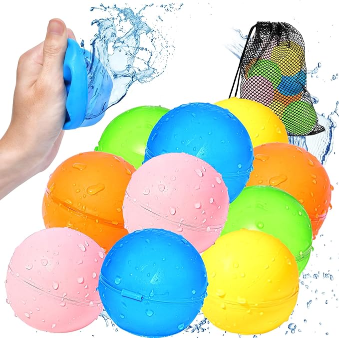 SOPPYCID Water Balloons Reusable Quick Fill - Self Sealing Silicone Water Balls for Kids with Mesh Bag, Outdoor Summer Fun Water Toys for Activities, Summer Party, Water Park, Family Game 10 Pcs