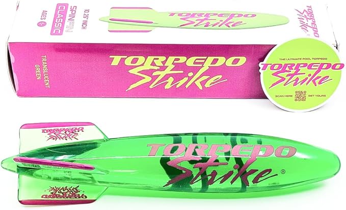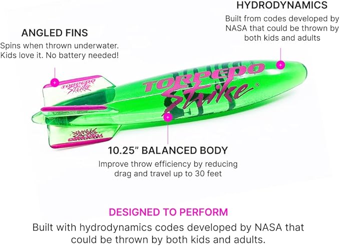 SpinFin 10.25" Large Ultra Premium Pool Torpedo Rocket Spins & Glides Up to 30 Feet Like Underwater Football for Under Water Passing Games Underwater Torpedo Diving Toy Glider (Green)