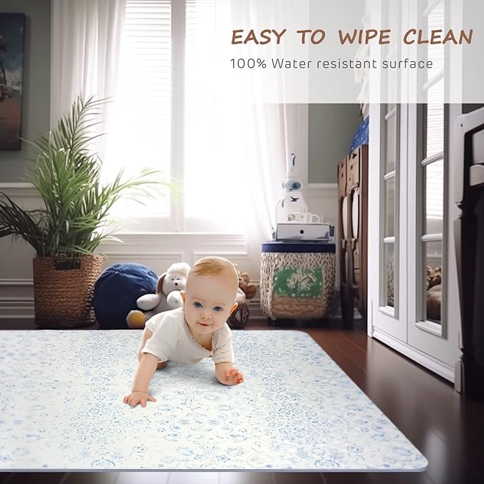 Extra Large Baby Play Mat - 4FT x 6FT Non-Toxic Foam Puzzle Floor Mat for Kids & Toddlers (Persia Handmade Pattern, Blue and White)