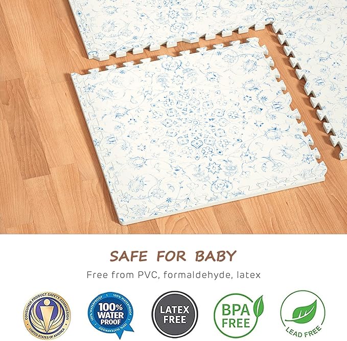 - Our EVA foam play mats are FREE of BPA, Latex, Lead, Phthalates, and Formamide. Feel safe placing your baby on our hypoallergenic foam play mats. Perfect for your baby's sensitive skin!