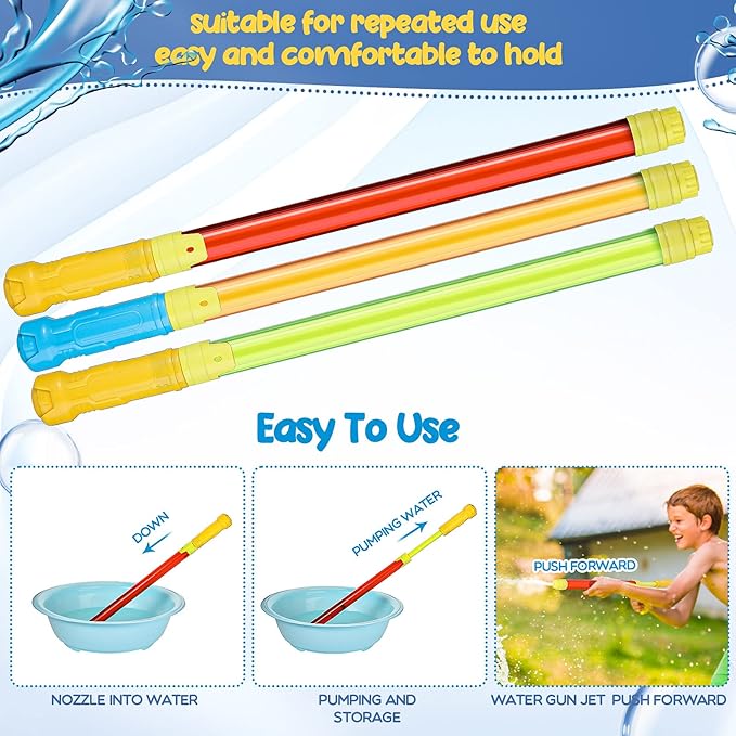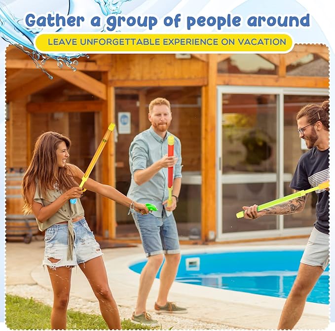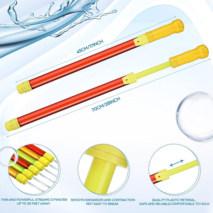 - Widely Applicable: this water tube squirter can be played at the pool, beach, yard or garden, ideal for most occasions, such as beach parties, birthday parties, summer theme parties, beach family parties, children's day, graduation ceremonies and more, to create unforgettable memories
