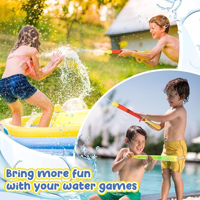 - Long Shooting Distance: the water shooter can produce a fine and powerful stream of water from a distance of up to 30 feet, making it suitable for summer water fights, school events and summer outdoor pool games, to bring unlimited fun