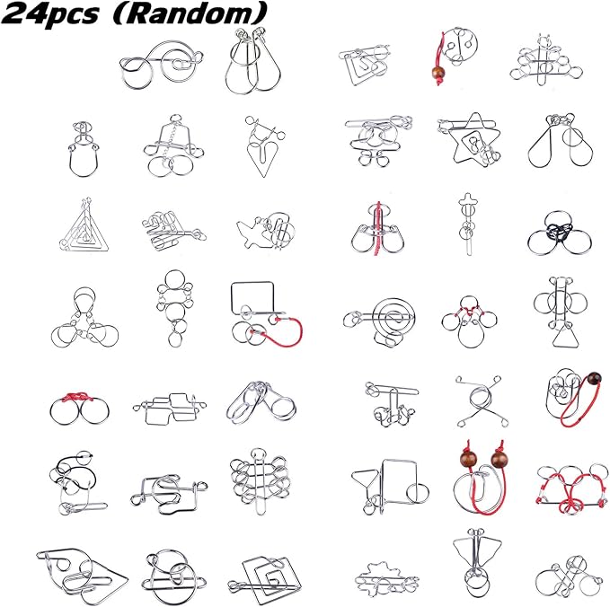 VolksRose 24pcs Brain Teaser Metal Wire Puzzles, Classical Mini Metal Puzzles Set, Mind Smart Game IQ Challenge Puzzle Games, Educational IQ Test Toy Lock Puzzle Gift for Adults Kids Teenagers