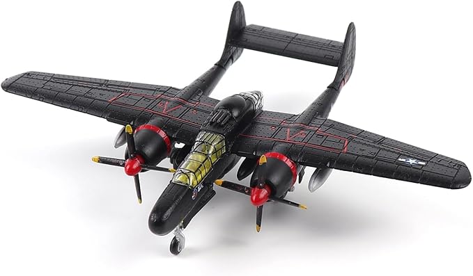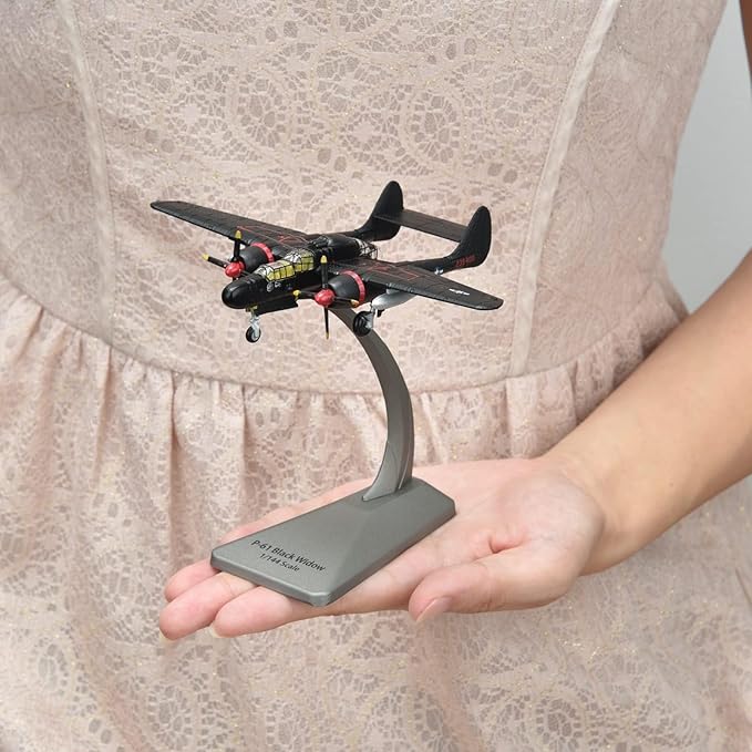 - 【Material Craft】-The P-61B Black Widow diecast metal airplane model is a die-cast metal aircraft model kit with a fuselage made of high-quality metal and finely molded with engineered plastics to ensure superior durability and longevity. The surface is painted with baked enamel, clear painting and markings, smooth surface, bright colors, and won't crack or fade with long-term use. Sturdy model with fade-resistant paint makes this WWⅡ model planes perfect for collecting.