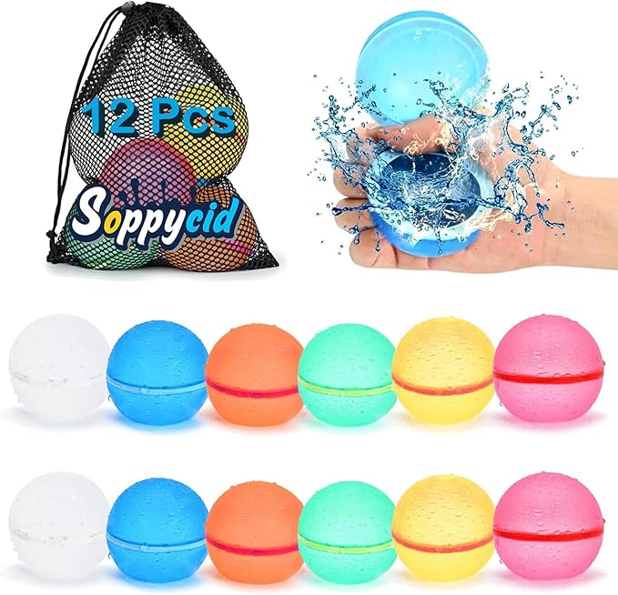 98K Reusable Water Balloons 12Pcs with Mesh Bag, Self Sealing Silicone Ball Latex-Free, No Clean Hassle, Easy to Fill, Summer Toys Water Toy Swimming Pool Beach Park Yard Outdoor Games Party Supplies