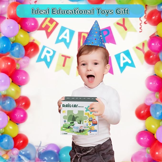 New Plastic Puzzles for Kids Ages 3-5 with Cute Vehicle, Toddler Puzzle Track Play Set Gift, Critical Thinking Educational Toys for 3-6 Year Old Boys & Girls, Montessori Toys
