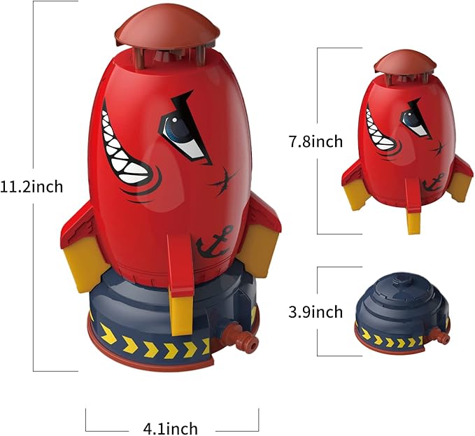 - 【Durable Material】 The rocket sprinkler is made of Eco-friendly ABS material, safe and sturdy, durable and long lasting, perfect to bring your kids or pets a lot of fun in hot summer days.