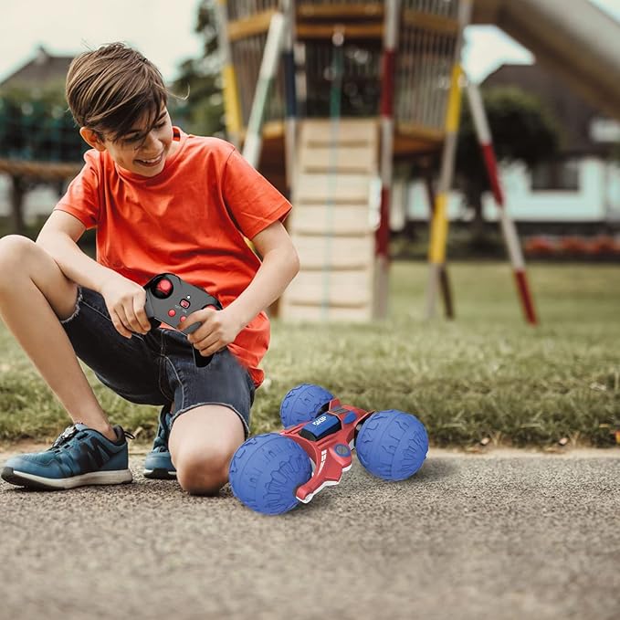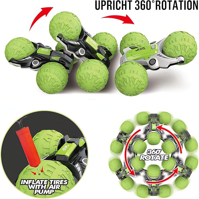 - 360° + 360° DEGREE STUNT ACTION: Experience thrilling stunts with our innovative RC car! It can perform front and back flips, ground rotations of 360 degrees, and upright rotations of 360 degrees. The 180-degree flipping feature adds excitement and versatility to playtime.